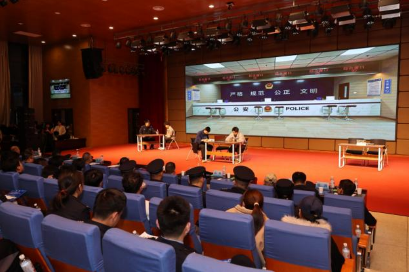 当民警代表陈莹演唱的反诈歌曲《擦亮双眼》落下最后一个音符,活动进入第二阶段百名民警进宿舍反诈宣传活动。