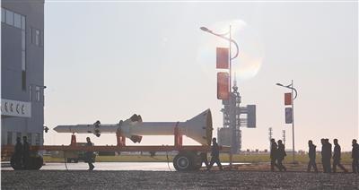 11月25日神舟二十二号飞船成功发射,中国载人航天工程首次应急发射任务取得圆满成功。图为11月18日拍摄的逃逸塔转运画面。