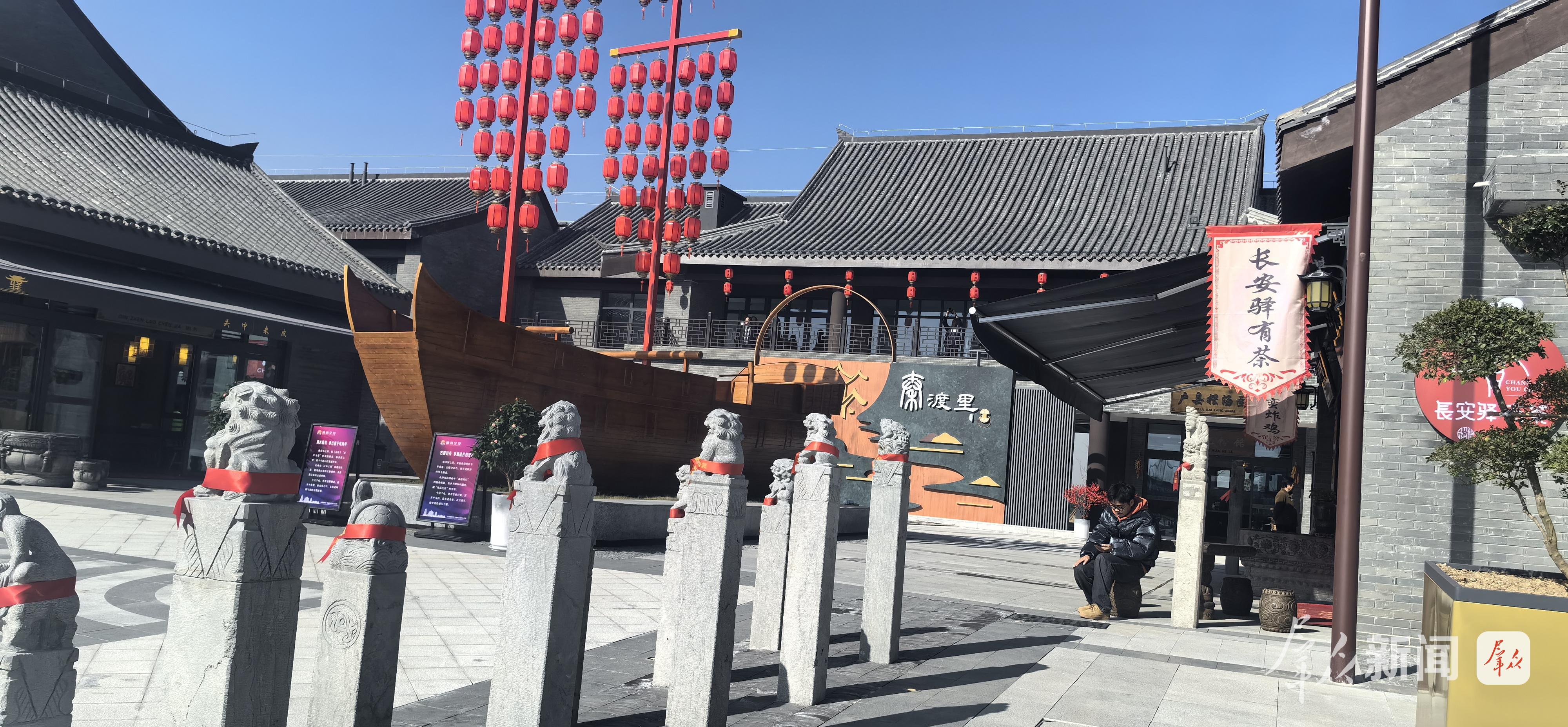 陕西交控集团相关负责人介绍,秦渡服务区在整体设计上,以“关中风情仿古小镇”为基调,采用南北区对称布局,通过古镇商业街式设计串联单层与二层建筑,青瓦灰墙的仿古建筑沿主街错落分布,既保留关中传统民居的质朴韵味,又以开放式商街形态强化互动性与体验感。这种设计不仅契合“千年古渡”的历史文脉,更通过空间重构,将服务区从“交通驿站”升级为“文化客厅”。