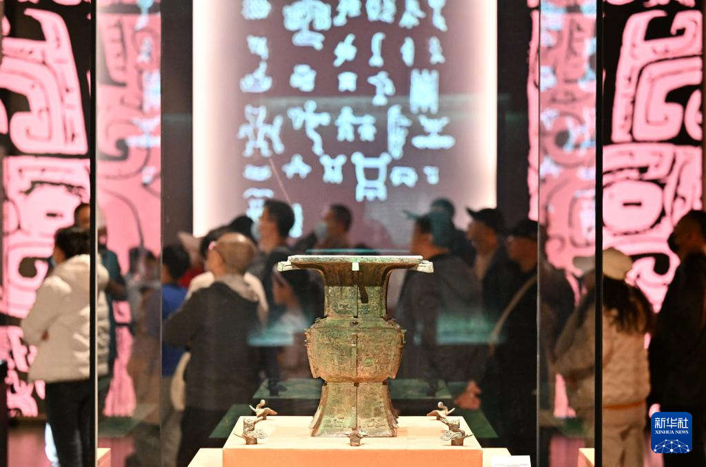11月29日在展览上拍摄的展出文物亚址铜方尊。