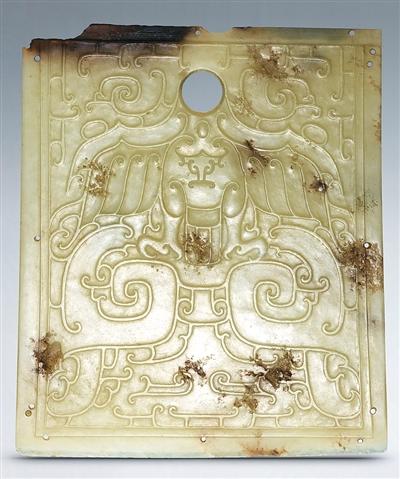 墓葬依殉狗、殉人、棺、壁龛等配置的有无和多少为标准,可划分为不同等级,等级越高配置越完备,随葬器物越丰富,墓葬规模也就越大。“高等级墓葬中出土的陶明器和玉器尤被学界关注,陶器一般为盉(斝)、瓶、盆(壶)、杯组合,这些器类在石峁文化居址中都可见到。玉器主要有钺和环,其中一件鹰纹玉钺保存完好,一面减地刻出繁复的翔鹰和人(神)面形象,是目前所见石峁文化遗址出土玉器中最为精美者。”邵晶说。