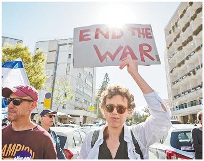 10月4日,人们在耶路撒冷参加游行集会,要求迅速在加沙地带实现停火。