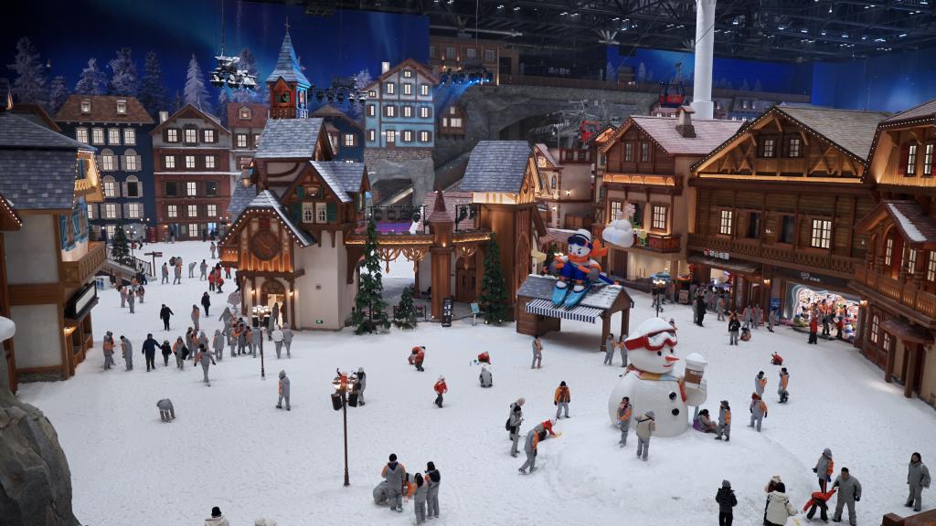 12月1日,人们在上海耀雪冰雪世界“雪世界”玩乐。新华社发