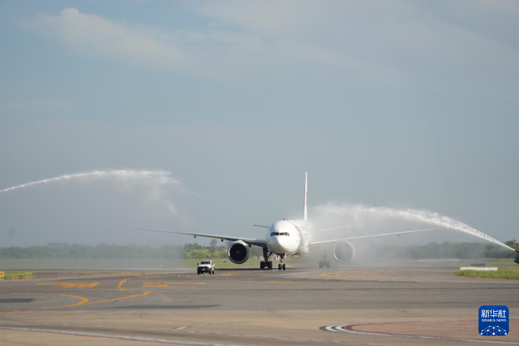 新华社布宜诺斯艾利斯12月4日电(记者张铎 王钟毅)中国东方航空公司MU745航班4日抵达阿根廷首都布宜诺斯艾利斯的埃塞萨国际机场,缓缓穿过象征民航最高礼仪的“水门”。这标志着中阿两国之间首条直航航线开通。