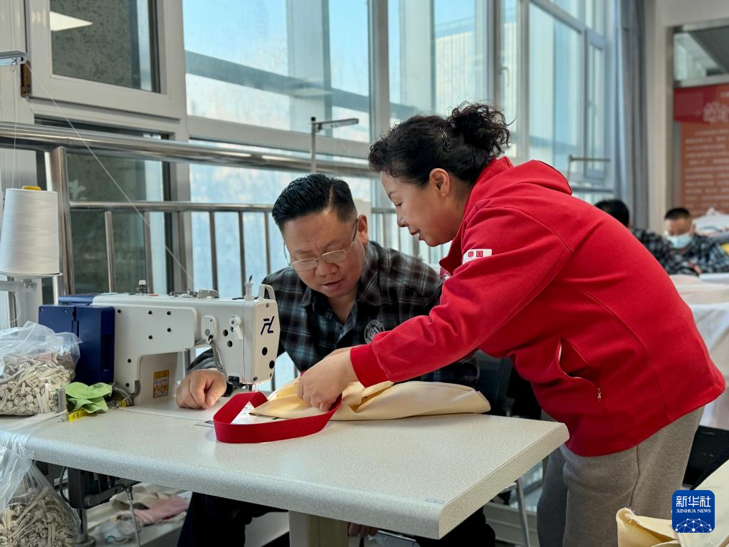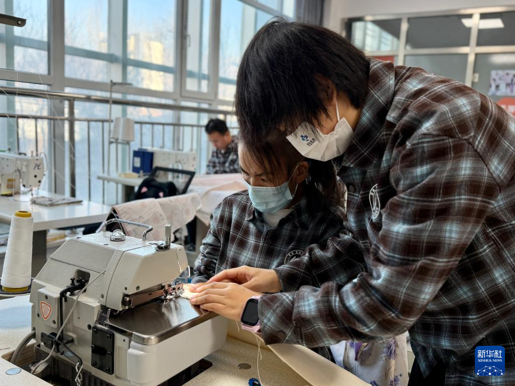 12月2日,在城东区智爱共富工坊辅助就业基地,马爱红在给学员做指导。新华社记者 张子琪 摄