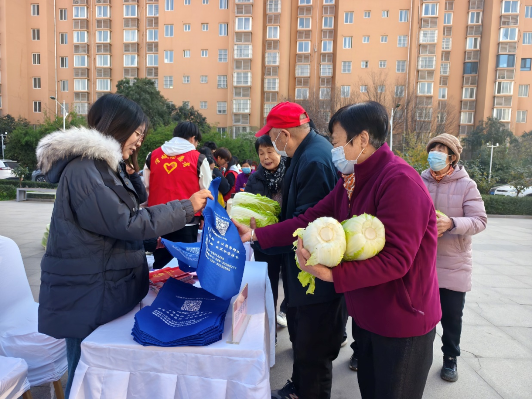 咸阳睦邻互助公益发展中心准备的200颗新鲜大白菜现场免费发放,居民们排着整齐的队伍,脸上洋溢着幸福的笑容,领到白菜的阿姨们念叨着:“这不仅是一颗白菜,更是志愿者们的一片心意。”