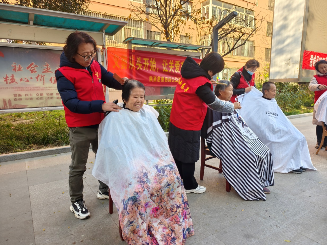 在便民服务区,渭城区政协委员志愿服务队、咸阳睦邻互助公益发展中心、延安大学咸阳医院志愿服务队、渭城区曙光救援队、无尘光影义剪服务队、陕西工大“家电侠”青年志愿服务队、咸阳市爱星青年公益服务中心、长庆石化社区“银龄帮帮团”等各类志愿服务组织各展所长,勾勒出一幅幅“民有所需、我有所应”的暖心画卷。