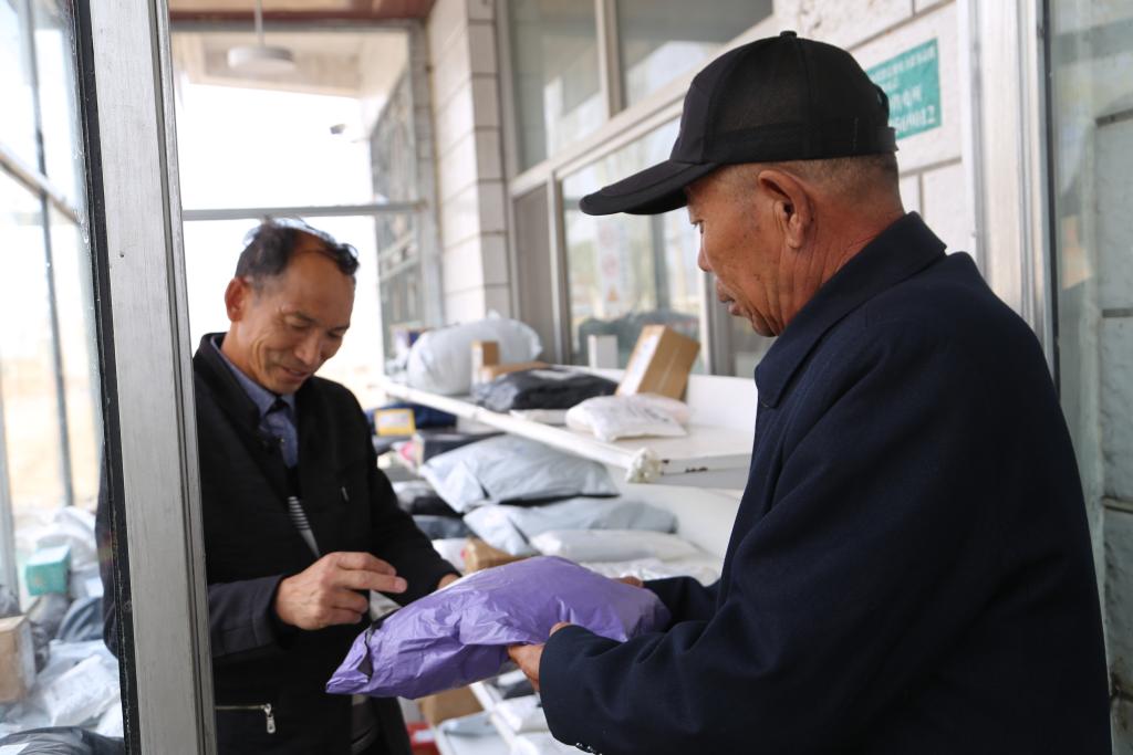 每天,邮政工作人员将包裹送往泾河村,再由杨爱茹利用邮政“中邮E通”系统入库邮件、短信通知收件人取件;村民若要寄快递,就可找到杨爱茹,在她帮助下,线上下单,随后由邮政工作人员带回西夏区分公司发往全国。
