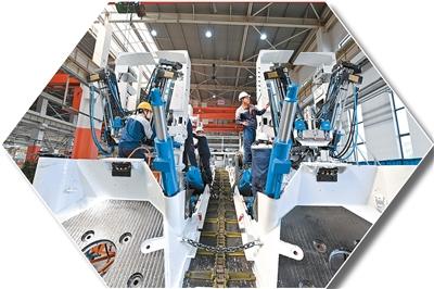 工人在中国煤炭科工集团太原研究院有限公司生产掘锚一体机。