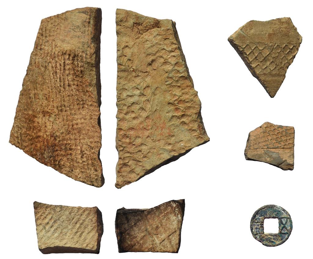 这是此次考古调查发现的陶瓦片、五铢钱等。榆林市文物保护研究所供图
