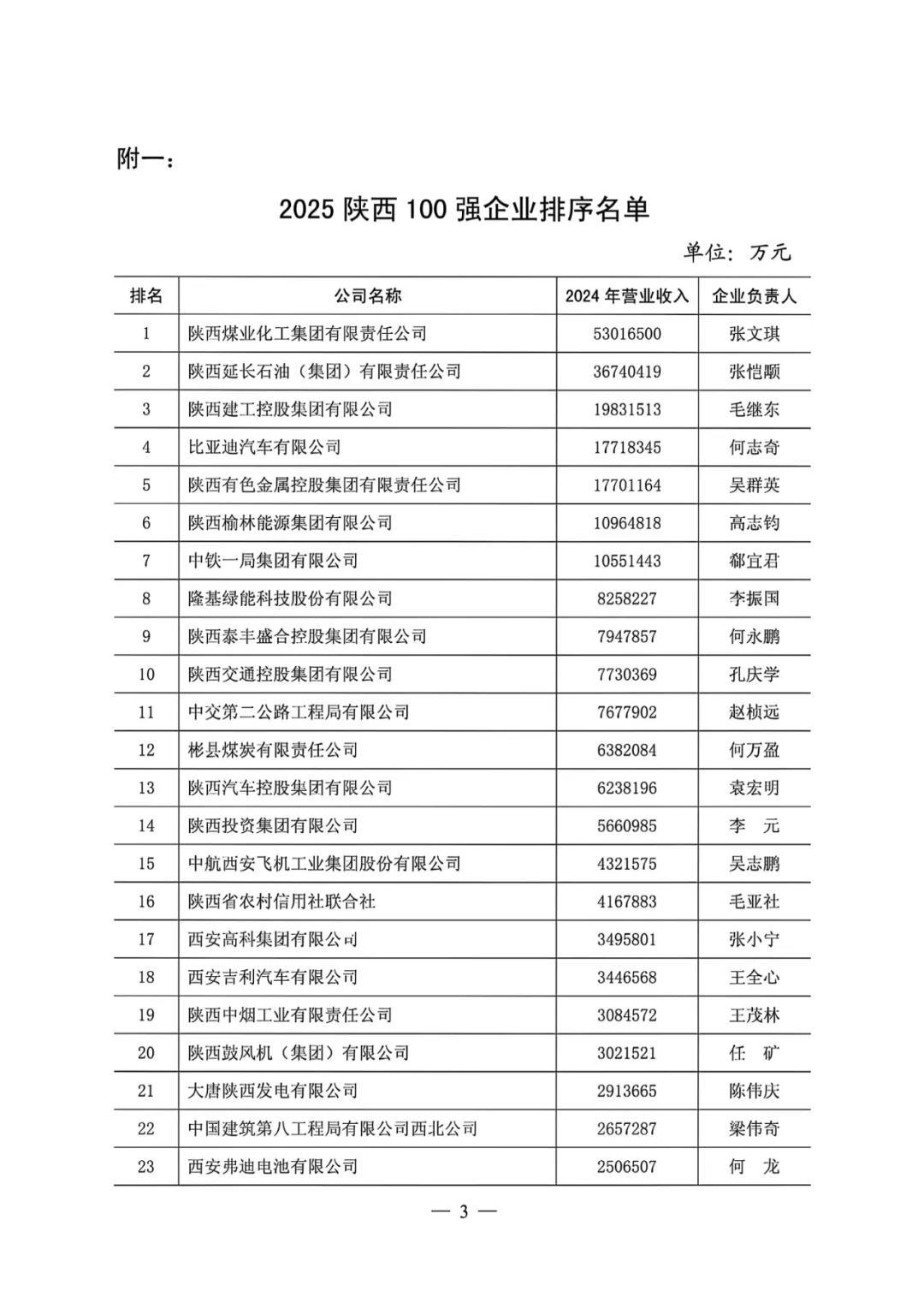 2025陕西100强企业及民营50强企业排序是按照国际通行的方式,参照中国500强企业排序办法,坚持公平公正、不向企业收取费用等原则,依据企业2024年度营业收入,在企业自愿申报的基础上进行排序,并经“陕西省100强企业审定委员会”审定后产生。