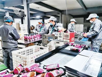 森态源公司生产车间,工人们忙着包装魔芋果冻产品。