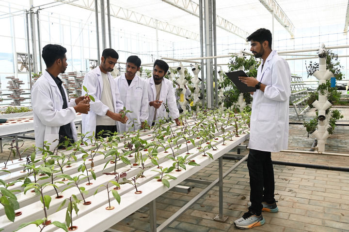 2025年7月2日,在甘肃省张掖市山丹县培黎职业学院,巴基斯坦留学生在现代农业产教融合实践基地进行实操练习。新华社记者 范培珅 摄