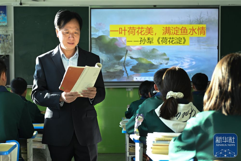 12月24日,在青海省海北藏族自治州门源回族自治县浩门镇高级中学,山东援青教师王坚在上课。