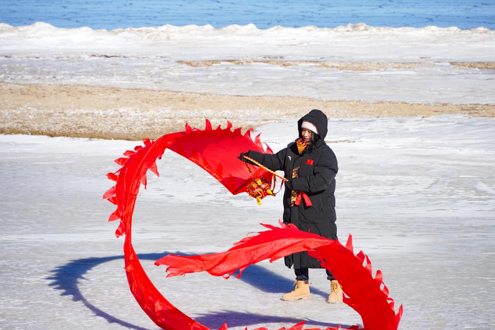 12月27日,一名徒步爱好者在活动中舞动彩带龙。新华社记者 齐芷玥 摄