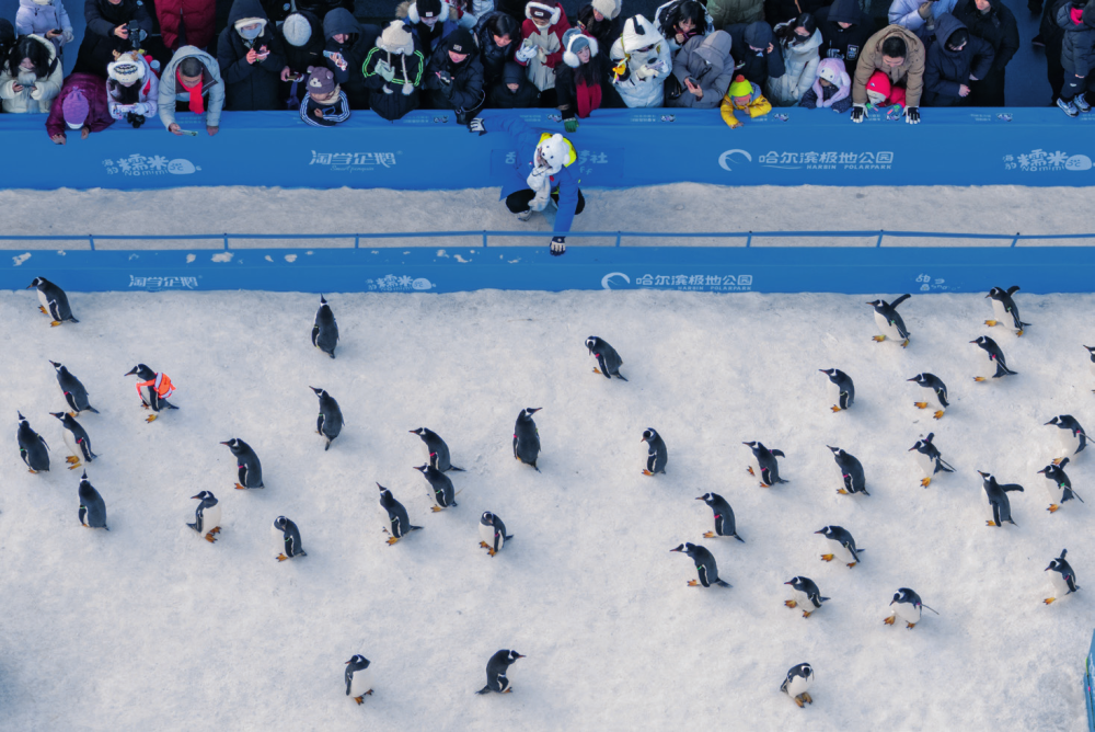 哈尔滨极地公园的企鹅在户外进行巡游(2025年12月13日摄)张涛摄/本刊