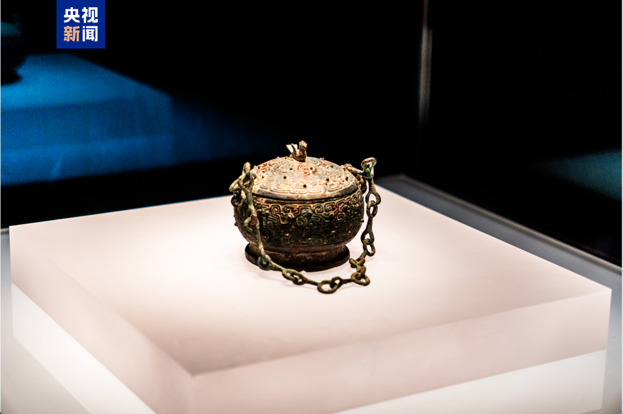 △ 春秋·骨雕香薰,与青铜链盒同墓出土,应可以随身悬挂,内放香料以散发香味。山东大学博物馆藏。