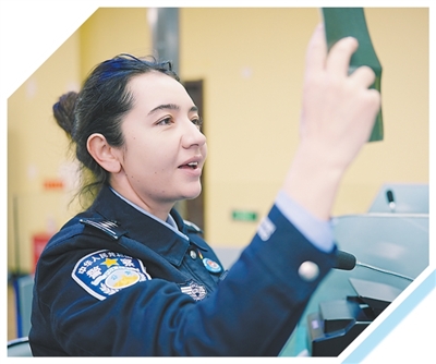 2019年,比比亚斯曼脱下军装换上警服,成为首批移民管理警察。她主动加码学习出入境法律法规、证件鉴别知识。