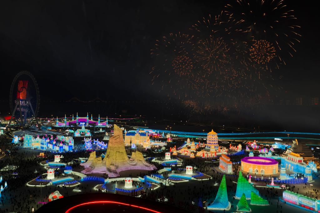 1月5日17时许,松花江北岸,夜空被璀璨的烟火点亮。在零下十几摄氏度的严寒中,第42届中国·哈尔滨国际冰雪节在哈尔滨冰雪大世界启幕!