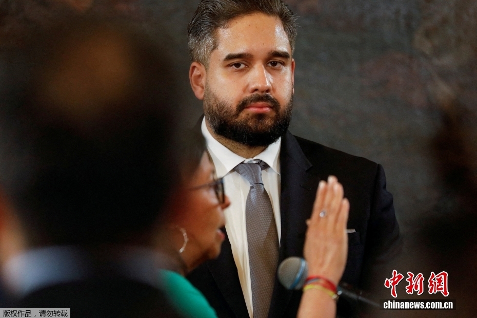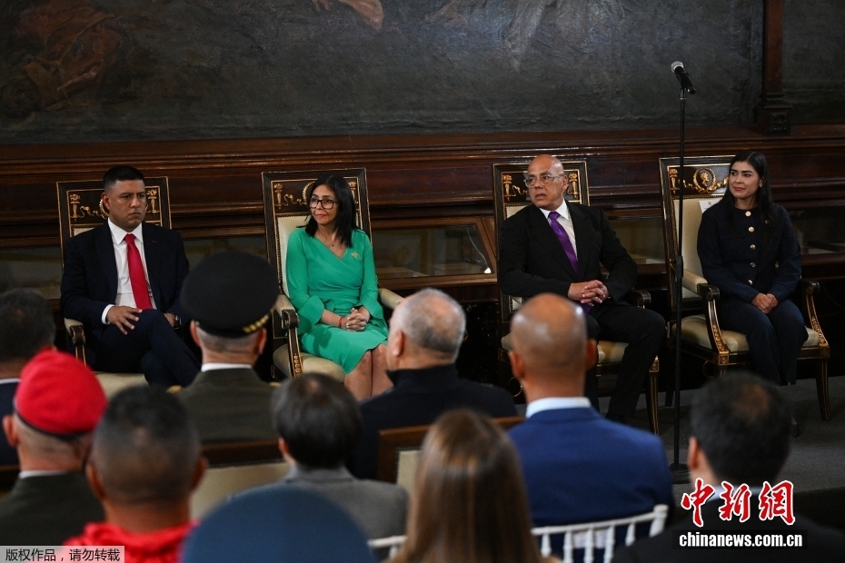 综合外媒报道,当地时间1月5日,委内瑞拉代理总统德尔西·罗德里格斯在该国全国代表大会宣誓就任委临时总统。据此前报道,美国3日对委内瑞拉发起大规模军事行动,突袭委首都加拉加斯等地,强行控制委内瑞拉总统马杜罗及其夫人并将他们带至美国。委内瑞拉最高法院当天命令时任副总统罗德里格斯代理总统一职。图为当日在宣誓就任仪式上拍摄的罗德里格斯。