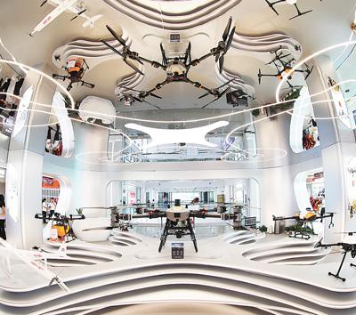 浙江义乌全球数贸中心展示的多款无人机。