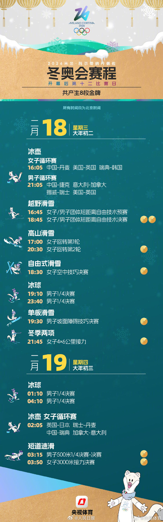 今天,米兰冬奥会30天倒计时,赛程图正式解锁。整整18天,冰壶、滑雪、速滑、冰球、花滑等精彩赛事轮番上演。为中国冰雪健儿加油!