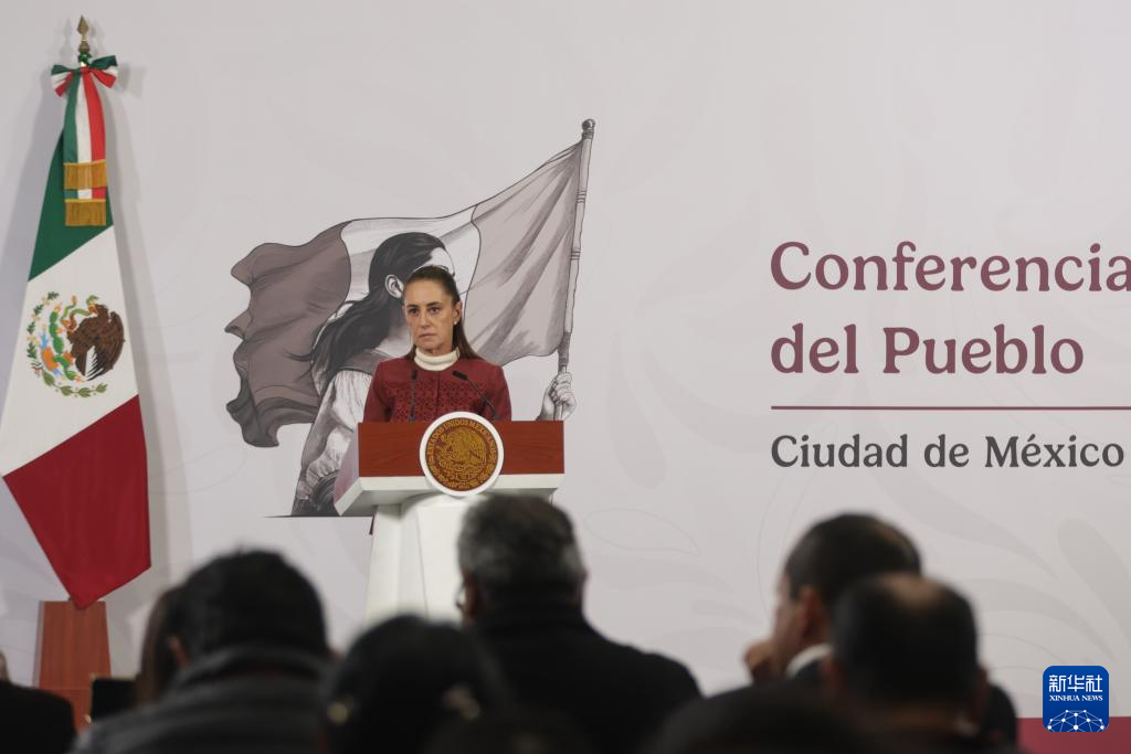 1月12日,墨西哥总统克劳迪娅·辛鲍姆在首都墨西哥城参加例行新闻发布会。新华社发(弗朗西斯科·卡涅多摄)