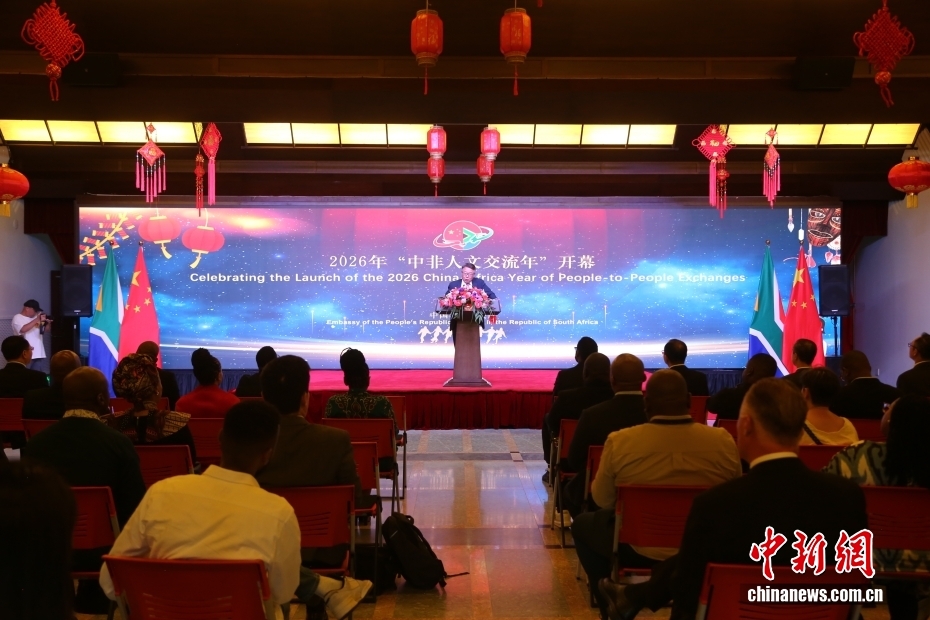 当地时间1月12日,中国驻南非使馆在比勒陀利亚举办2026年“中非人文交流年”宣介会。图为旅南中国侨胞与南非本土歌舞团共同表演。