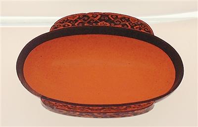 耳杯是用于盛酒或羹的椭圆形器皿,是目前出土楚国漆器中数量最多的器型,有圆耳与方耳之分。其双耳颇似鸟之羽翼,故又称为“羽觞”。武王墩一号墓出土耳杯以红、黑漆为主,彩绘纹饰包括勾连云纹、雷纹、旋涡纹。望着这些历经2000多年依然明艳夺目的漆器,可以想象楚王宴饮时案上陈列华丽的漆木餐具、双手捧执耳杯敬酒的场景。
