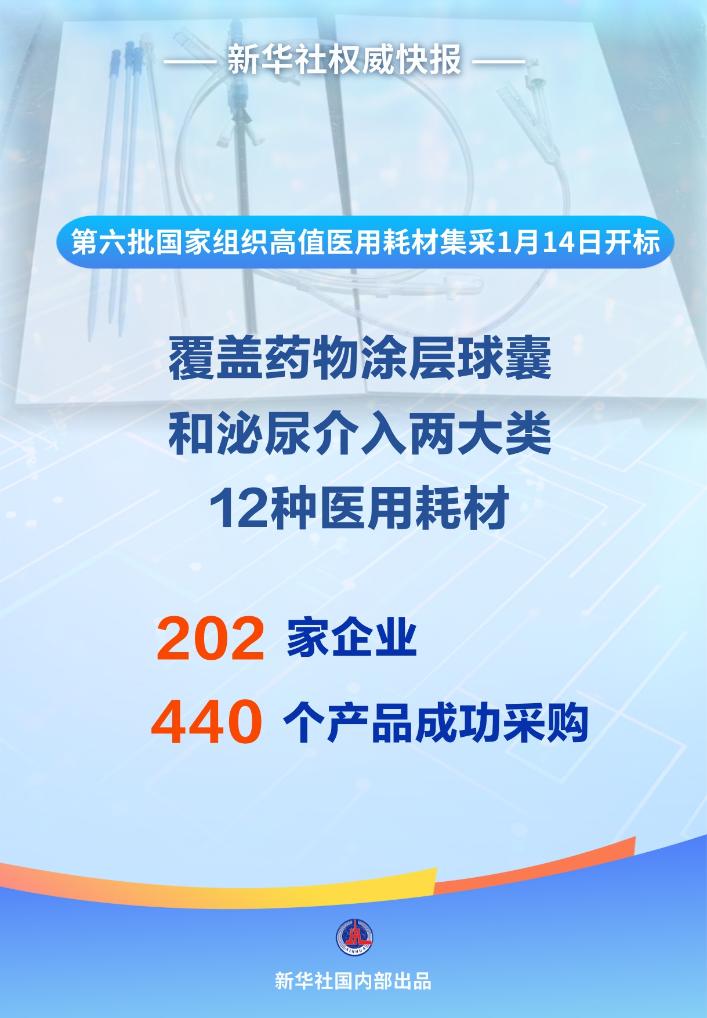 1月14日,第六批国家组织高值医用耗材集中带量采购中选结果公示。此次集采覆盖药物涂层球囊、泌尿介入两大类12种医用耗材,共202家企业440个产品中选,产品选择丰富多元。