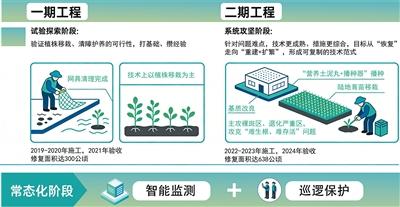 两期修复工程先后实施,为海草生长创造舒适“家园”