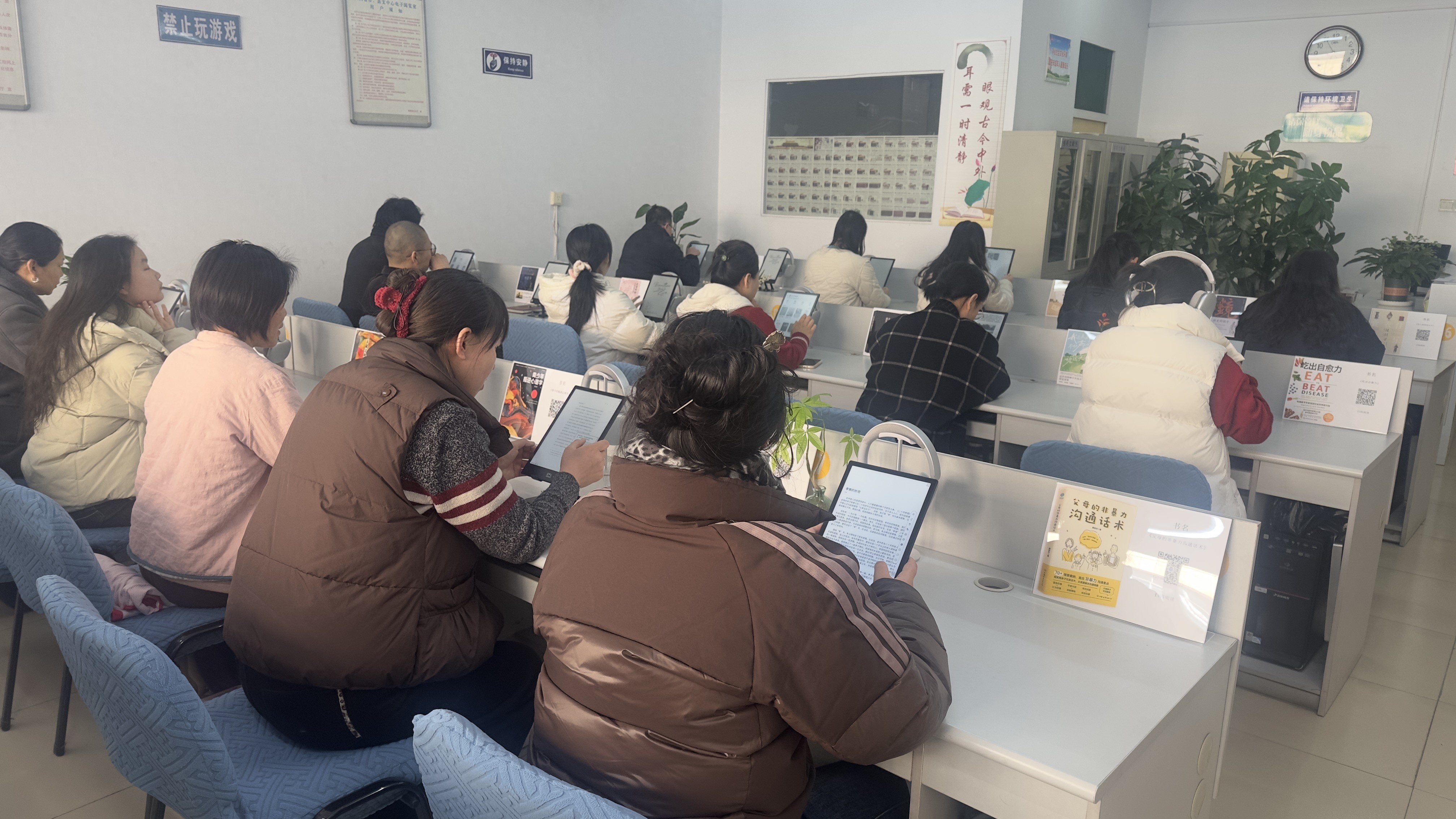 近日,在印台区图书馆电子阅览室,一排排崭新的墨水屏阅读机整齐排列,读者们专注地沉浸在书香世界里。与普通电子屏幕相比,这种屏幕不发光、不闪烁,视觉效果接近纸质书籍,既有效保护读者视力,又最大程度保留了纸质阅读的舒适体验。