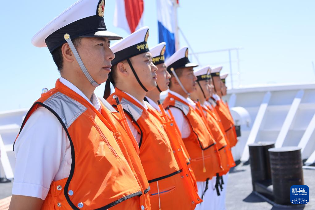 这是中国海军舰艇首次停靠乌拉圭。图为码头欢迎仪式。新华社发(崔晓洋 摄)