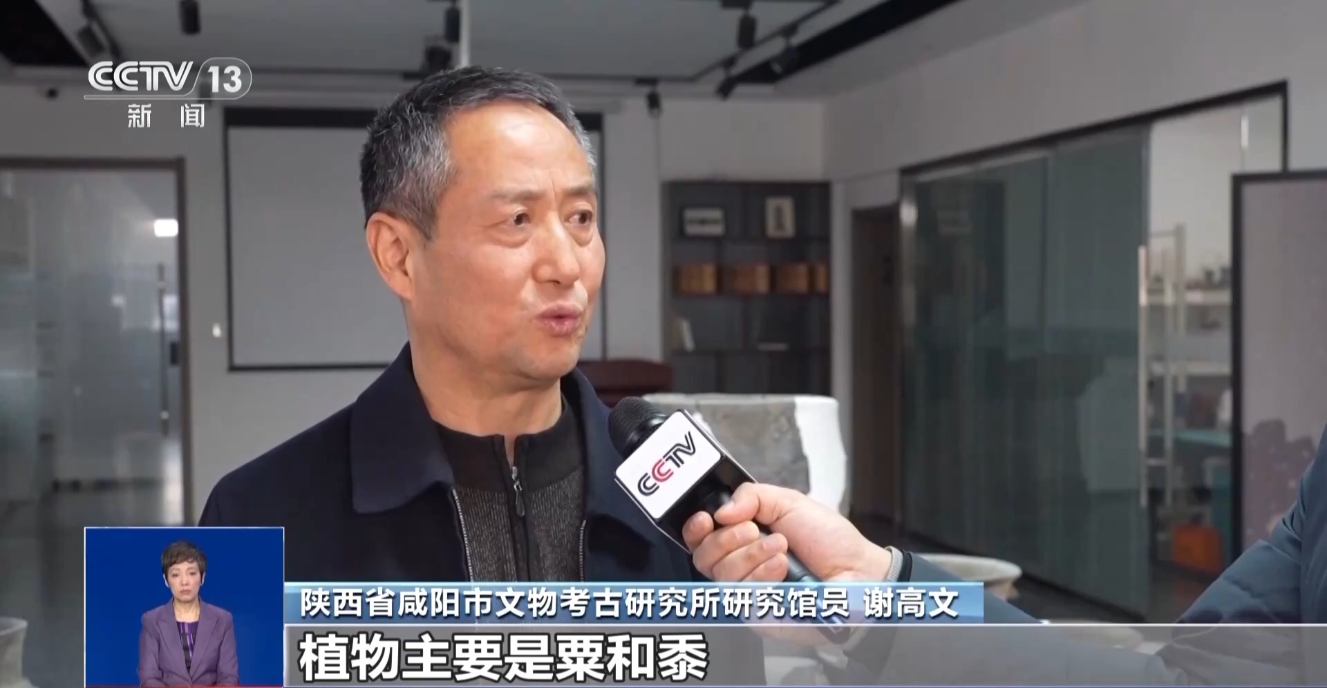 陕西省咸阳市文物考古研究所研究馆员 谢高文:采了1000多个样本,获取了800多份炭化植物,植物主要是粟和黍,还有稻和大豆。贮存方式一个是含穗贮存,再一个脱粒贮存,还有脱壳贮存。