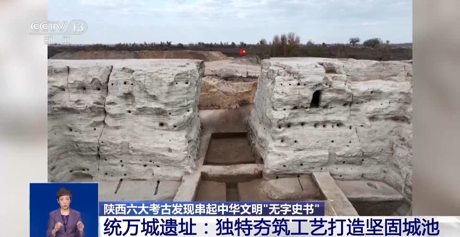 陕西省考古研究院副研究馆员 苗轶飞:以前我们都认为和其他城一样,都是平夯,2025年,我们发现统万城不一样,它是那种犬牙交错式地这样夯起来的,它整个城墙都是这样,极大地加强了它的整体性。