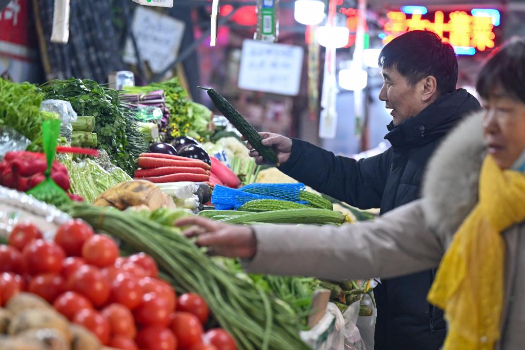 在新疆乌鲁木齐市盛源综合农贸市场,市民在选购蔬菜(1月20日摄)。