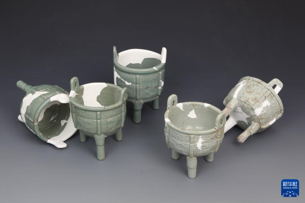 这是张公巷窑修复展出的青釉饕餮纹鼎式炉(资料图片)。新华社发