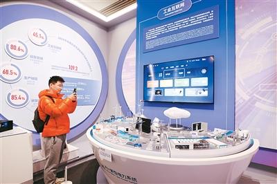 参观者在日前举办的“筑基强国路——中国制造‘十四五’成就展”上拍摄展出的AI+新型电力系统。