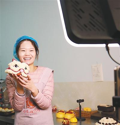 一家花馍店的店员在直播销售花馍。