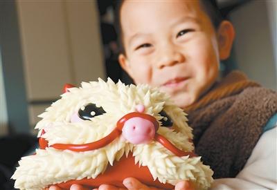 小朋友在展示花馍。