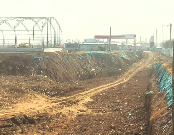 隆冬时节,在陕西省礼泉县城关街道办坡上村S216省道边,一道蓝色彩钢瓦围墙圈出一片区域。围墙内,一处面积可观的深坑中可见建筑垃圾、生活垃圾、工业污泥等物,部分垃圾已被一层黄土覆盖,空气中能闻到刺鼻气味。