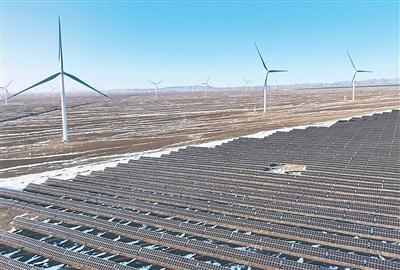 图为新疆生产建设兵团第六师北塔山牧场风光电场。近年来,当地深挖资源优势,利用荒山坡地大力发展风光电产业,有力推动新能源产业高质量发展。