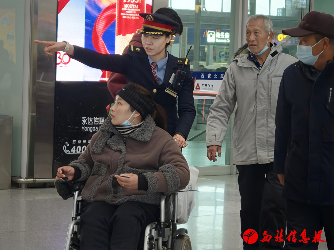 西安站围绕旅客出行全流程,聚焦老年旅客、学生、务工人员等重点群体,推出多项“线上+线下”便民利民措施,与运力保障、智能服务形成互补,切实将客运提质成果转化为旅客看得见、摸得着的出行实效。全新推出“轻装行”行李配送服务,涵盖站内寄存、同城配送、异地直达三大板块,破解旅客“大包小包”出行难题;落实学生票可修改目的地政策,方便学生群体灵活调整行程;深化适老化服务,安排志愿者协助老年旅客购票、进站、乘车,配备大字版行程示卡、老花镜等物资,切实解决老年旅客“出行难”问题。服务台放置出行咨询服务手册,增设送亲友专用通道,免费提供儿童防走失手环;为听障旅客配备手写板,保障无障碍出行;配备轮椅、拐杖等辅助器具,为行动不便的老年旅客提供全程接送服务,让重点群体出行更有保障。