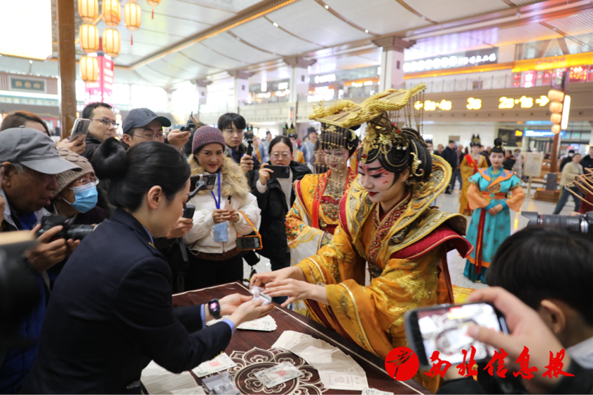 为丰富旅客出行体验,西安站结合地域文化特色,深度融合盛唐文化与春运温情,推出形式多样的春运文化服务活动,让旅客在旅途之中感受浓厚的年味与陕西文化气息,实现“旅途有温度、出行有诗意”。
