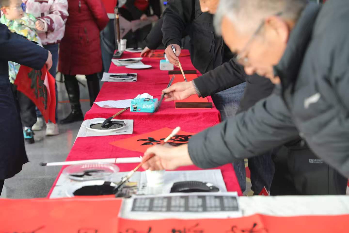 在杨陵车站,“暖程送福”活动热闹开启。现场邀请书法家挥毫泼墨,为过往旅客免费书写春联和“福”字,一笔一划间传递着新春的美好祝福。杨凌小提琴协会的演奏者们奏响悠扬旋律,让候车大厅洋溢着温馨氛围。此外,车站还设置互动问答环节,为参与的旅客送上春节小礼物,让旅途充满惊喜。