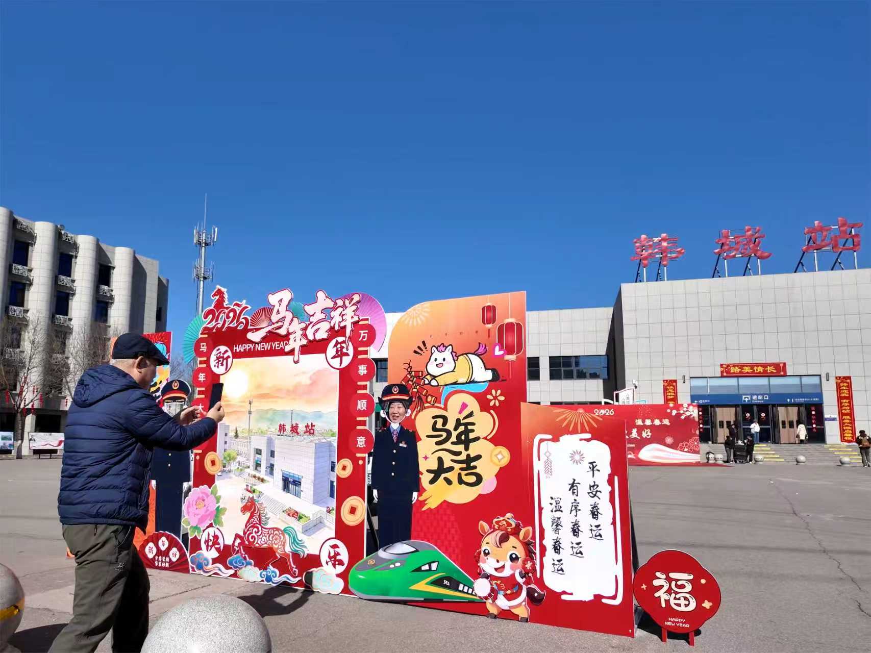 2026年2月2日,春运大幕正式拉开。在陕西省韩城火车站,一场别开生面的“文化春运”同步启程。西安铁路局韩城车务段(以下简称“韩城车务段”)联合陕西文化产业(韩城)投资有限公司、韩城市花椒产业发展中心等多家单位,将站前广场巧妙转化为一座充满地域风情的“文旅融合会客厅”,让南来北往的旅客在旅程伊始,便沉浸于司马故里的历史底蕴与浓浓的年味之中。
