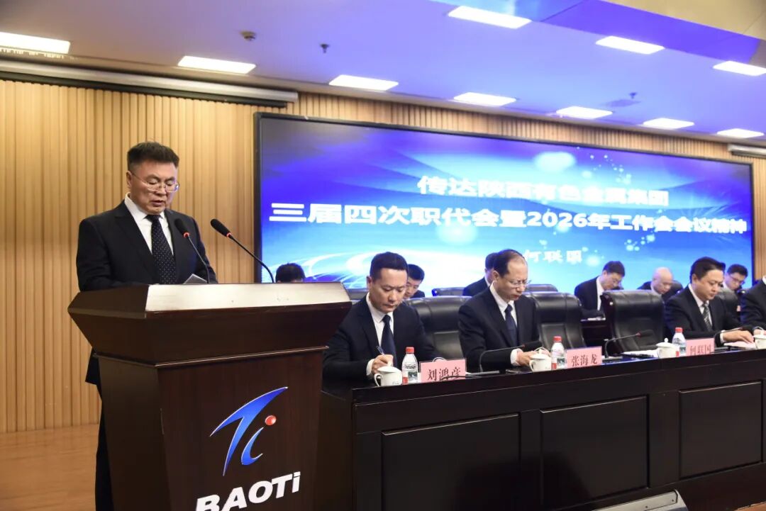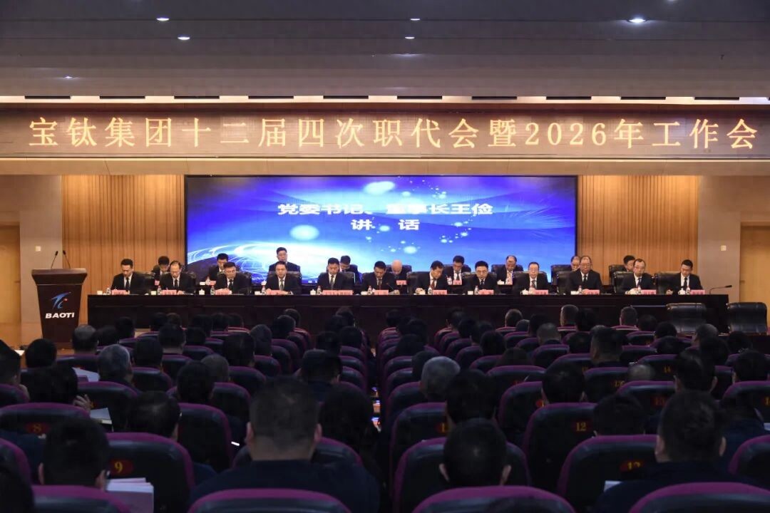 2月3日,宝钛集团十二届四次职代会暨2026年工作会议在宝钛宾馆学术报告厅召开,会议深入学习贯彻党的二十大精神、党的二十届四中全会精神,传达学习陕西有色金属集团三届四次职代会暨2026年工作会议精神,全面总结2025年工作及成绩,安排部署2026年重点任务。集团党委书记、董事长王俭出席会议并讲话,党委副书记、总经理陈战乾作工作报告,党委副书记、工会主席贺治民主持会议。