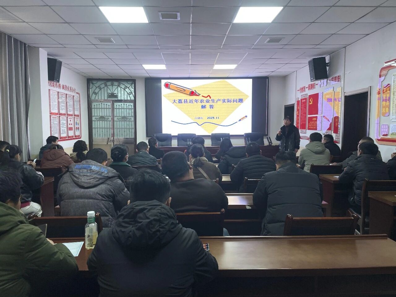 1月22日—28日,大荔县农业技术推广中心(农广校)开展了以“稳粮油、保供给、防风险、促和美”为主题的冬春农民大培训。培训会上,培育站站长刘晨光传达学习了渭南市农广校《关于做好2026年冬春农民大培训的通知》文件精神,王娟玲、白晓红、成红梅等农技专家重点围绕小麦冬春管理、“一喷三防”技术,玉米“一喷多促”“5335”集成技术对大家进行详细阐述。培训采取课堂讲授和现场提问的方式,结合当前田间实际情况及存在问题,深入浅出解答相关问题,对当前农业生产有很强的指导性和针对性。