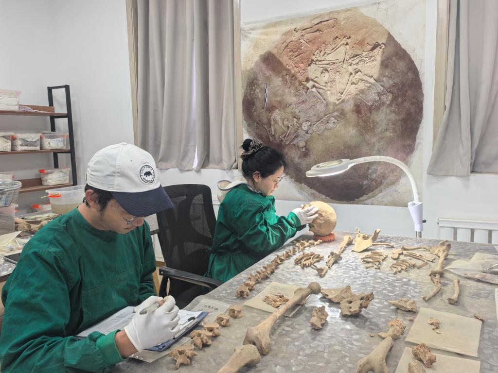 专家对出土人骨进行整理研究。(中国社科院供图)