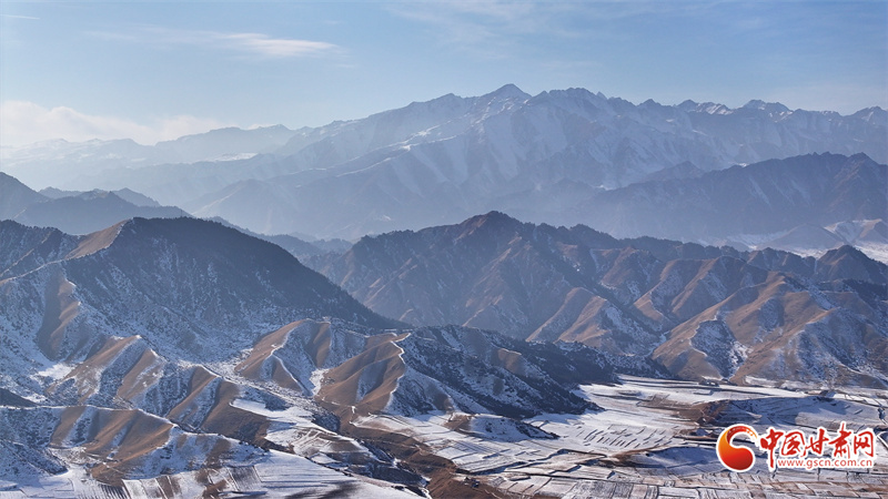 近日,一场初雪过后,在甘肃省张掖市民乐县境内,连绵起伏的祁连山脉被皑皑白雪覆盖,层峦叠嶂宛如朵朵“浪花”。山脚下,田野与村庄错落分布,牛羊在覆雪的田地上悠然觅食,一幅雄浑壮美的水墨画卷在天地间铺展开来。